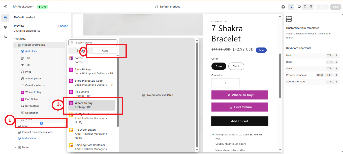 - At the sidebar select Add Block and then select Where to Buy