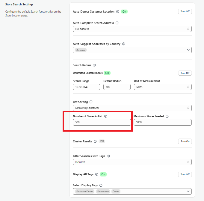 - This field controls how many stores are pre-loaded into the map list, regardless of filtering or searching.