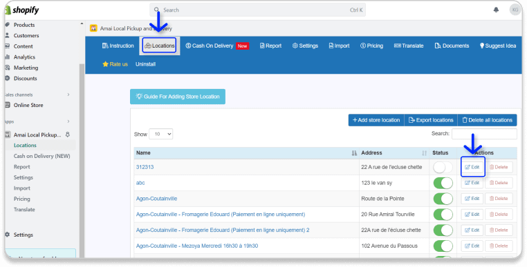 - To open the setting of a specific location, you need to go to the Location tab and click on the Pencil icon.