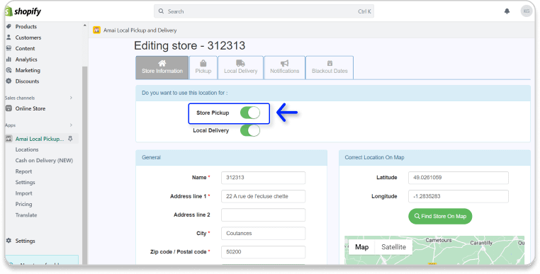 - In the Information tab, you have to enable the Pickup option.