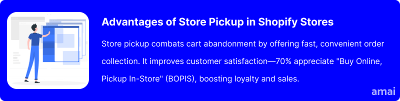 People often want things quickly, so when they know they can get their order fast, they are more likely to make a purchase without hesitation. Statistics reveal that a staggering 24% of online shoppers abandon their carts due to slow shipping times. This particular issue can be solved by integrating pickups for your Shopify store.