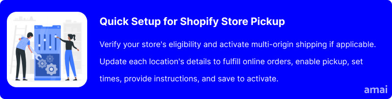 Before adding in-store pickup to your Shopify store, ensure you meet the eligibility criteria. If you have multiple store locations, activating multi-origin shipping is necessary to utilize the pickup option effectively.
